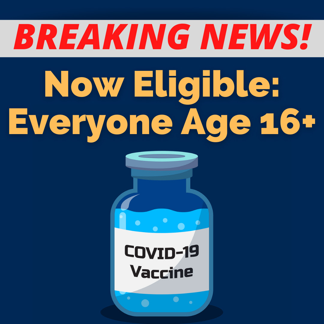 Anyone over the age of 16 is now eligible to sign up to receive the vaccine. This is slightly ahead of the statewide schedule, which opened up to more critical infrastructure workers in the 1C category on Monday.